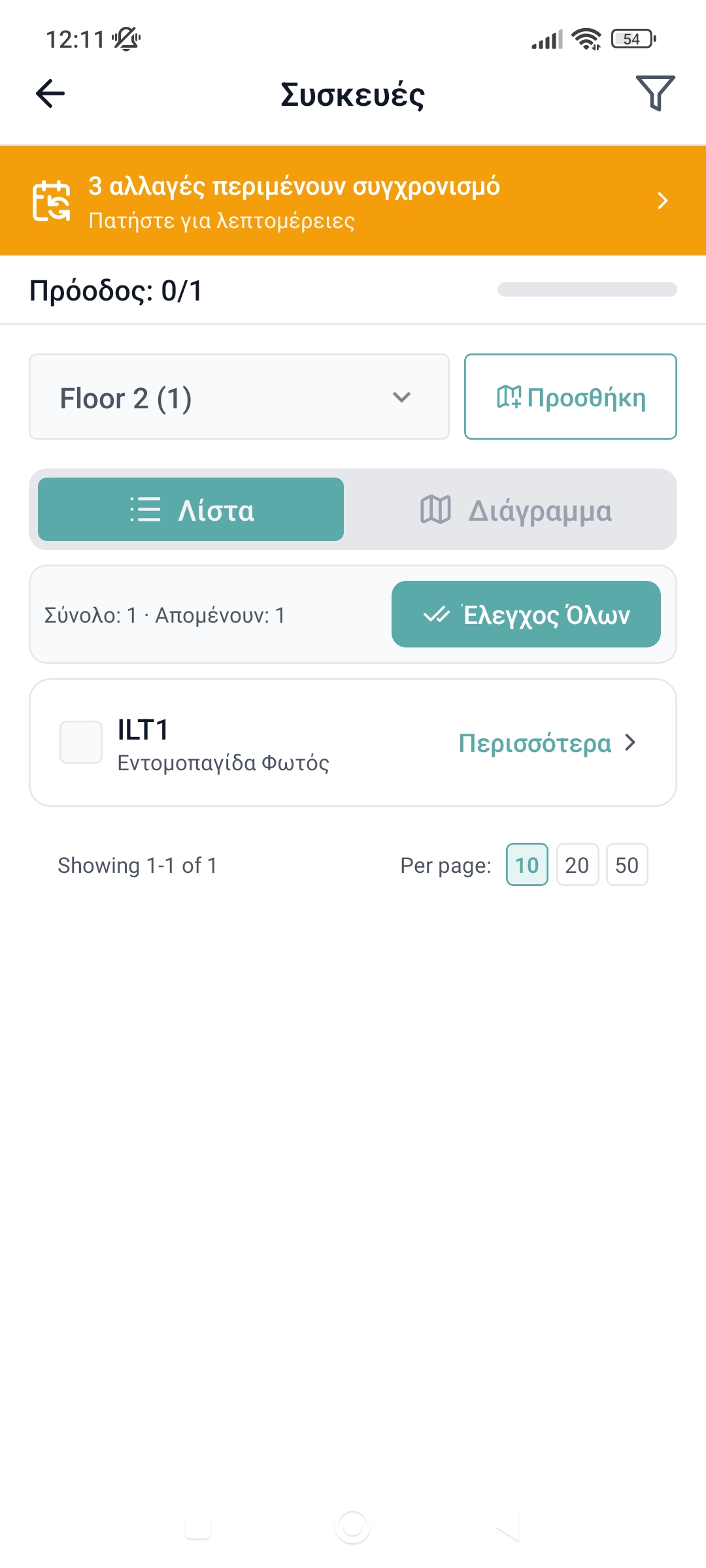 Μόλις ο Τεχνικός κάνει κλικ στο κουμπί Συσκευές, θα μεταφερθεί στην οθόνη Συσκευές.